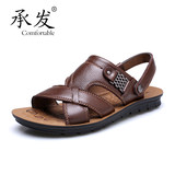【红蜻蜓】男士头层皮拼色沙滩鞋